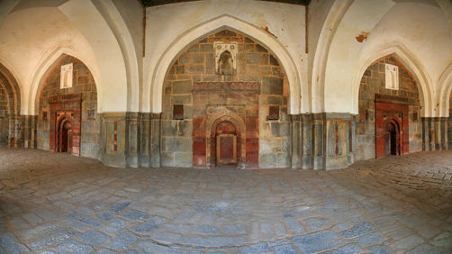 Die muslimischen Herrscher werden heute im Deutschen als „Mogul“, „Grossmogul“ oder „Mogulkaiser“ bezeichnet. Der erste Grossmogul Babur (reg. 1526–1530), ein aus Zentralasien stammender Fürst der Timuriden-Dynastie,[4] eroberte, ausgehend vom Gebiet der heutigen Staaten Usbekistan und Afghanistan, das Sultanat von Delhi. Als bedeutendster Mogulherrscher gilt Akbar (reg. 1556–1605), der das Reich militärisch, politisch und wirtschaftlich festigte. Unter Aurangzeb (reg. 1658–1707) erfuhr das Imperium der Moguln seine grösste territoriale Ausdehnung. Es wurde aber durch die territoriale Expansion finanziell und militärisch derart überdehnt, dass es im Laufe des 18. Jahrhunderts zu einer Regionalmacht im politischen Gefüge Indiens herabsank.