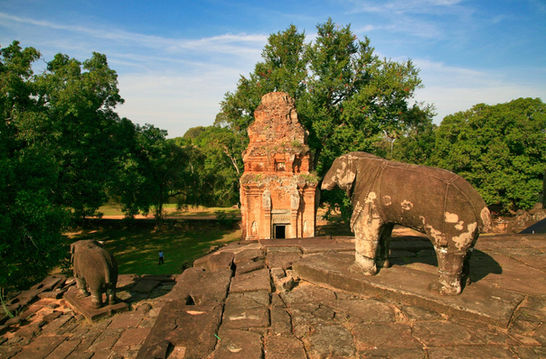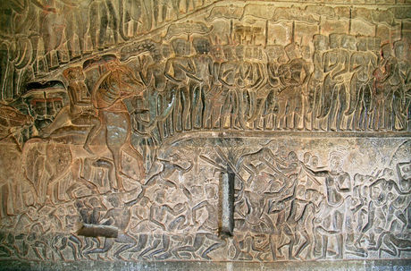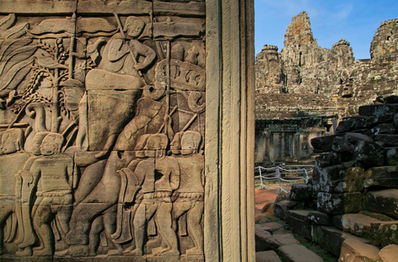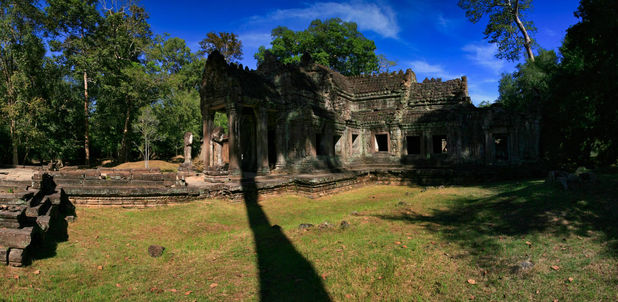 Mit dem Tuk Tuk Fahrer von Gestern hatten wir abgemacht, dass er uns durch Angkor führen würde. Er war uns sehr sympathisch. Wir setzten uns hinten hinein und tuckerten zum Eingangstor, wo wir uns einen mehrtägigen Pass kauften. Der war mit Foto und allem drum und dran. Dann ging es in das riesige Gebiet des alten Ankors hinein. Wir liessen uns von Tempel zu Tempel chauffieren. Das Wetter war gut und so hatten wir beide gute Laune. Die Ausmasse von Angkor sind schon gewaltig und es ist unmöglich, alles zu sehen. Wir konzentrierten uns auf die Tempelruinen, die ich positiv in Erinnerung hatte. Zum Abschluss besuchten wir den Angkor Wat Tempel, wo wir lange Zeit verweilten.