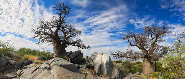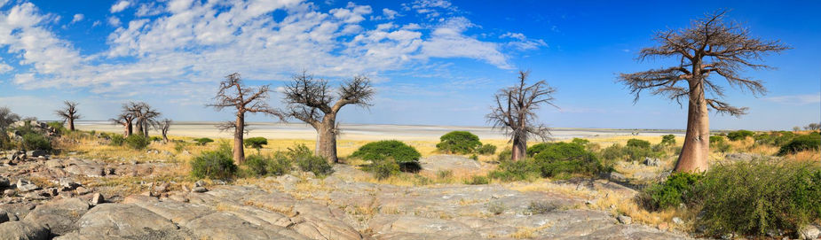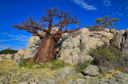 Wenn die Gelbschnabeltokos nicht an unserem Auto herumgehämmert hätten, würden wir wohl jetzt noch in unserem Dachzelt liegen. Wir standen auf, nahmen schnell eine Dusche und fuhren los. Die paar hundert Kilometer bis nach Lethlakane waren schnell abgespult. Dort fanden wir einen tollen Einkaufsladen vor und wir konnten unseren Proviant sehr gut aufstocken. Dort hatte es sogar ein kleines Touristenbüro, warum auch immer. Wir fragten bei der Frau nach, ob es möglich sei, nach Kubu Island zu gehen. Das war wegen des vielen Regens nicht sicher. Die Frau bestätigte uns, dass das gut möglich sei. Einzig die Salzpfanne nach Gweta dürften wir nicht befahren, das sei wegen Überschwemmungen nicht möglich. Also stellten wir unser Navi auf Kubu Island ein. In Mmatshumo war ein Gate, um zu Kubu Island zu kommen. Die waren schon erstaunt, dass wir da so einfach ohne eine Reservation angefahren kamen. Doch wir hatten Glück und es war noch ein Platz zu haben. Also stand dem Besuch von Kubu Island nichts mehr im Weg. Der Himmel war etwas wolkenbedeckt und es hatte viel Sand in der Luft. Das schränkte die Sicht etwas ein. Der Weg nach Kubu Island war gut markiert und so kamen wir ohne Probleme dort an. Mehr als die Hälfte der Plätze waren schon besetzt. Uns sagte der Platz N°7 zu, da hatten wir unseren persönlichen Baobab. Nach einer kurzen Siesta schnallten wir die Trekkingschuhe an. Wir waren guten Mutes, dass Kathrin eine kleine Wanderung wieder schaffte. Wir liefen los und erlebten schöne Aussichten. Der Himmel hatte sich wieder ein wenig gelichtet und so ergaben sich schöne Stimmungen. Den grossen Baobab massen wir mit 14 Doppelarmlängen aus, was dann doch einen Umfang von 20 Meter ergab. Das waren schon eindrückliche Bäume, die wir da sahen. Die Wanderung machte uns beiden Spass, auch wenn Kathrin sehr vorsichtig sein musste. Um fünf Uhr waren wir zurück beim Auto. Trotz anfänglicher Skepsis von Kathrin schaffte ich ein schönes Grillfeuer und wir hatten ein leckeres Abendessen.