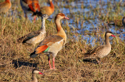 In aller Früh waren wir bereit, um mit Pangolin in den Chobe Park zu fahren. Das war viel früher, als dass wir sonst unterwegs waren. Wir lernten wieder einiges, nicht nur was das Fotografieren anbelangte, sondern auch von den Tieren. Der Driver wusste extrem viel und wir sogen die Informationen nur so auf. Die Ausfahrt war schön und interessant, auch wenn die coolen Tiersichtungen fehlten. Auch professionelle Game Driver haben keine Garantie auf Katzen zu treffen. Die Mittagszeit verbrachten wir auf unserem Camping. Auch da konnten wir eine Neuentdeckung notieren, und zwar kam uns ein Bushbuck besuchen. Um zwei Uhr setzten wir uns auf die Terrasse unseres Hotels und tranken etwas. Es war lustig, dem Getue der Reisenden zuzuschauen. Es waren hier ganz viele Touren unterwegs, die ihre Leute auf ein Boot brachten. Auch ein halbes Altersheim war hier. Die Boote, auf die die Leute verfrachtet wurden, waren riesig. Da waren wir froh, als wir wieder in unser schönes Boot mit den drehbaren Stühlen von Pangolin einsteigen durften. Da wurden wir von ganz vielen Augen bestaunt, denn es ist schon ein Unterschied, ob man mit hundert anderen Leuten auf einem grossen Kahn ist oder in einem Bötchen mit acht Leuten. Die Fahrt auf dem Chobe River war wieder wunderbar und wir lernten, mit einem neuen Modus zu fotografieren. Anfänglich wollten die Finger noch nicht so recht die neuen Abläufe mitmachen, doch schnell wurde klar, dass so die viel besseren Fotos gelangen. Wir durften wieder schöne Sichtungen erleben, bis der Sonnenuntergang zeigte, dass wir schnell zum Park hinaus fahren mussten. Wir machen uns schnell noch ein Teller Teigwaren. Dabei passiert ein kleiner Unfall und ich schütte Kathrin heisses Wasser über die Hand. Zum Glück haben wir die richtigen Salben bei uns.