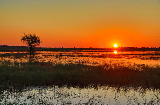 Die Nacht war sehr ruhig und bescherte uns einen tiefen Schlaf. Unsere Nachbarn erzählten uns, dass in der Nacht Elefanten an unserem Zelt waren. Davon hatten wir leider nichts gemerkt. Unsere Terrasse war sehr gemütlich und wir frühstückten ausgiebig. Um acht Uhr wurden wir abgeholt und zum Bootssteg gebracht. An einem Baum zeigte uns der Guide die Spuren eines Leoparden. Sehr gerne würden wir auch einen Leoparden sehen. Wir bestiegen das Boot und kämpften uns langsam durch das dichte Schilf. Nach dem Helikopterflug und den Eindrücken von Oben waren wir nun mitten drin im Okavango Delta. Unsere Aussies waren begeisterte Vogelsucher und hofften auf einen Malachite Kingfisher. Wir fanden den Kingfisher sogar, wow was für ein schöner Vogel. Leider war das Licht etwas ungünstig. Wir sahen auch sonst noch viele Vögel und genossen die Ruhe. Nach einer Siesta im Zelt, machten wir am Nachmittag eine Ausfahrt. Von den Löwen war wiederum keine Spur da, die versteckten sich sehr gut. Wir sahen viele Antilopen und auch Elefanten. Dazu viele Vögel, die wir noch identifizieren müssen. Dann ging es zurück ins Camp, wo wir unsere Grillstelle einfeuerten und uns ein leckeres Abendessen zubereiteten.