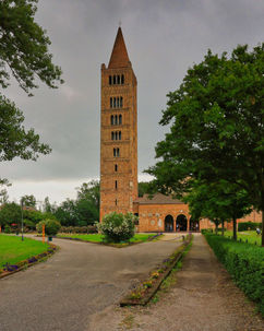 Das Wetter war trüb. Wir packten unsere Sachen zusammen und verliessen das Po Delta. Auf dem Weg nach Ravenna hielten wir bei der Abbazia di Pomposa an. Hier begann es in strömen zu regnen. Bustouristen waren hier. Wir mussten mit den Bustouristen mitlaufen, denn bald sollte der Gottesdienst beginnen. Somit war der Besuch der schönen Kirche nur ein mittelprächtiges Erlebnis.