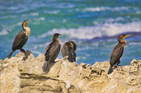 Wir wählten den Weg entlang der Küste, der Clarence Drive genannt wird. Auch diese Küstenstrasse lohnte sich sehr. Beim Stony Point Nature Reserve hielten wir an, denn hier gab es nochmals Pinguine zu sehen. Neben den Pinguinen entdeckten wir verschiedene Kormoranarten. Vis-à-vis sahen wir auf das Cape of Good Hope und Simon's Town. Wir hatten quasi die gesamte False Bay umrundet.