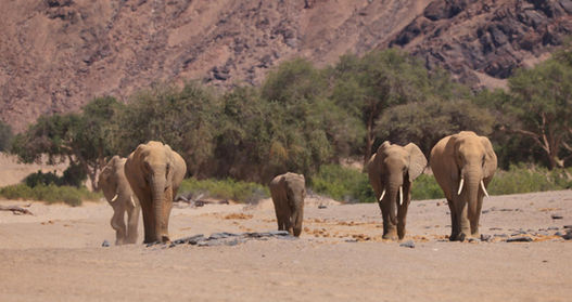 Die Wüstenelefanten sind keine eigenständige Elefantenart, sondern afrikanische Buschelefanten, die in der Namib-Wüste leben und sich an die harrschen und extremen Bedingungen angepasst haben. Ihre Sinnensorgane sind so geschärft, dass sie Wasser aus grossen Distanzen und unter der Erde riechen und aufspüren können. Durch graben von Löchern gelangen sie an das überlebenswichtige Wasser. Sie wandern von einer Wasserstelle zur nächsten auf traditionellen Wegen, die von der saisonalen Nahrungs- und Wasserverfügbarkeit abhängen. Das führt dazu, dass die Elefanten grosse Distanzen am Tag zurücklegen müssen. Forscher nehmen an, dass dieser Umstand auslöser ist, dass die Elefanten kleiner sind, als ihre Artgenossen in den Savannen. Zudem haben die Elefanten tendenziell längere Beine und grössere Fussflächen, was das Gehen im weichen Sand vereinfacht. Heute leben noch etwa Hundert Wüstenelefanten in Namibia, davon etwa zwanzig im Hoanib Valley. Die geringe Zahl zeigt, dass die Wüstenelefanten stark vom Aussterben bedroht sind und auf Schutz angewiesen sind.
