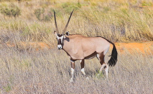 Wir fuhren bis an den Endpunkt der Parkstrasse. So kamen wir nach Union's End, dem Dreiländereck Südafrika, Namibia und Botswana. Von hier aus fuhren wir ins Gharagab Wilderness Camp, wo wir für eine Nacht gebucht hatten. Das Camp liegt wunderbar in den roten Dünen der Kalahari. Ansonsten war aber nichts los. Es hatte ausser ein paar Oryx und Springboks keine Tiere.