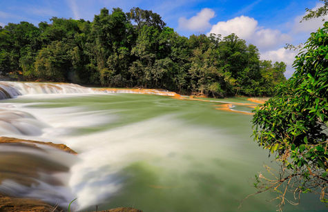 Das Wetter am nächsten Tag war nur mittelprächtig. Wir waren etwas unschlüssig, was wir machen wollten. Wir entschieden uns, den Weg nach Agua Azul zu machen. Der Weg dorthin war lang und kurvig. Dafür wurde das Wetter immer besser. Die Wasserfälle sind sehr touristisch. Zum Glück war die Anzahl der Menschen wegen der Pandemie immer noch reduziert. Wir übten uns im Fotografieren mit Verdunkelungsspiegeln. Statt Azul war das Wasser eher grün. Die Wasserfälle waren ok aber jetzt auch nicht eine Sensation. Dann fuhren wir zurück nach Palenque. Hier war es immer noch stark bewölkt. Trotzdem gingen wir zu den Ruinen und schauten uns diese an. Diese waren durchaus eindrücklich.